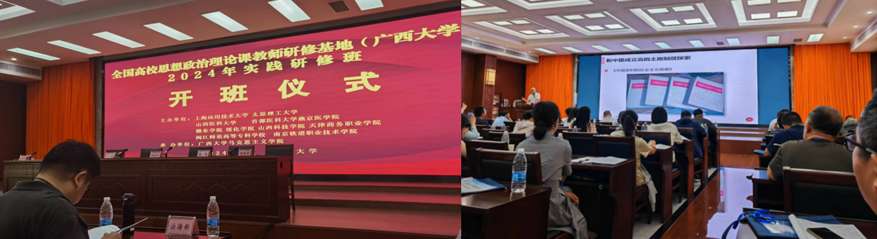 为深入贯彻落实习近平总书记关于学校思政课建设的重要讲话和重要指示批示精神,贯彻中办、国办《关于深化新时代学校思想政治理论课改革创新的若干意见》以及教育部《新时代高等学校思想政治理论课教师队伍建设规定》等文件要求,切实提升思政课教师的政治素质、业务能力、育人水平,7月8日至14日,同人小说 党委书记汤海新带队,公共教学部思政课教师一行9人参加了教育部高校思想政治理论课教师研修基地(广西大学)组织的暑期实践研修班。