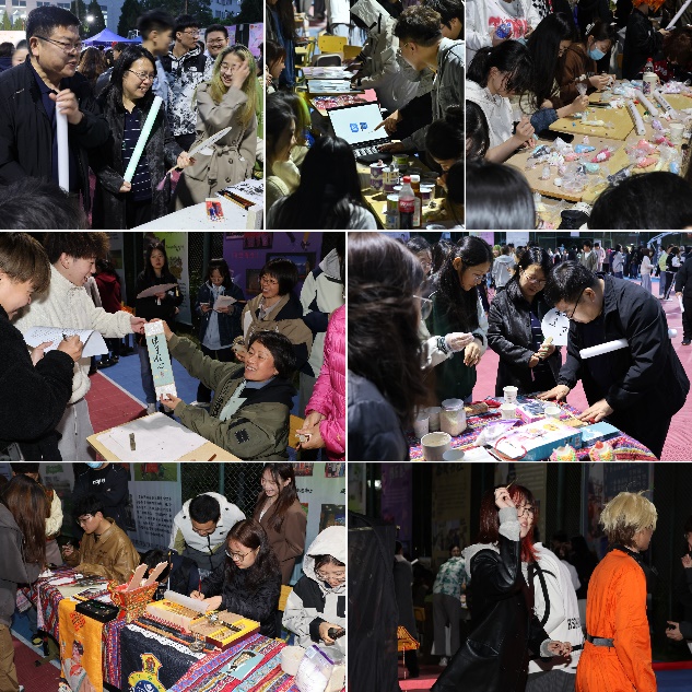 学生会、红会、社团等部门精心筹划,展示区域的活动各具特色,思贤书社、童嘎社、动漫社的社团活动以特色鲜明、精彩有趣吸引了师生的注意力,现场不仅有书法展示,还有藏文姓名书写以及各种手工DIY和猜谜活动,同人小说 领导、社团指导教师和在场同学积极互动,大家青春活力十足,师生携手共赴一场“青春之约”。