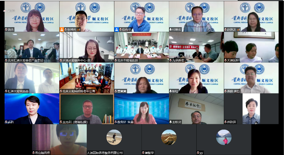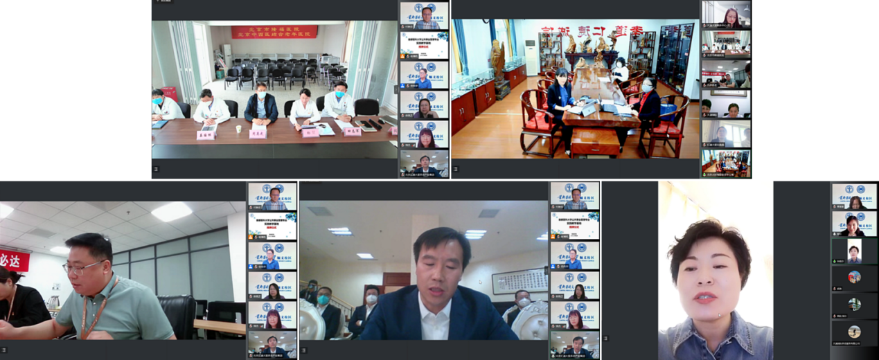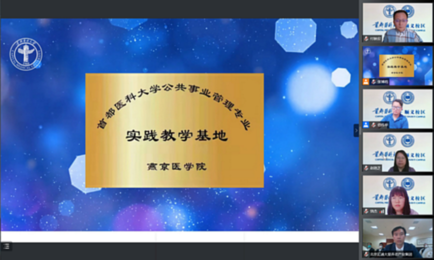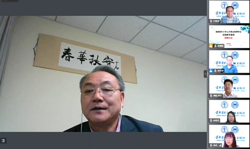5月17日,我院二年制公共事业管理专业实践教学基地授牌仪式通过线上的方式举行。学校副校长王松灵院士、教务处处长武艳、副处长朱淼、东城区卫生健康委副主任周英武出席了仪式。参加本次线上授牌仪式的基地主要领导有北京市隆福医院姜国栋书记、彭堃院长,北京九华养老服务有限公司徐进副总经理,北京汇通大爱养老产业集团赵国良总经理、郭遐副总经理,北京寿山福海投资发展集团有限公司孙艳芬副总经理,北京太阳城银龄老年公寓崔又双总经理,同人小说 党委副书记赵艳芝,预防医学学系和教学办的相关负责人等参加了签约仪式。仪式由同人小说 杨红院长主持。