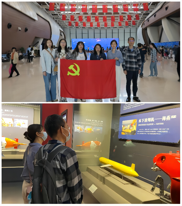 5月14日,为深入学习贯彻习近平生态文明思想,提高对地球自然历史和人文历史的认识,感受人类和环境之间相互依存、和谐共生的关系,实践团师生前往国家海洋博物馆,开展主题党日活动。实践团先后参观了“蓝色家园”活体展、“远古海洋”及“今日海洋”等多个展厅,直观了解了海洋与生命进化关系、海洋环境与可持续发展等海洋知识,深深感受到我国博大精深、生生不息的海洋文明和中华民族深沉的变通求新精神与不懈地对理想信念的求索探真精神。