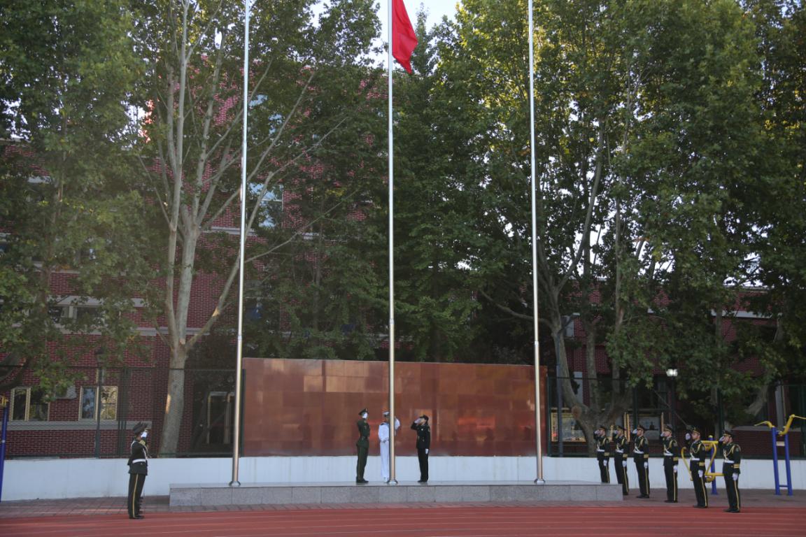 10月8日,同人小说 2019级全体军训学生在操场举行升国旗仪式。同人小说 党委书记吴兵、院长杨红、党委副书记、军训团副政委崔群颖、军训团其他教师和610余名大一新生共同参加了升国旗仪式。