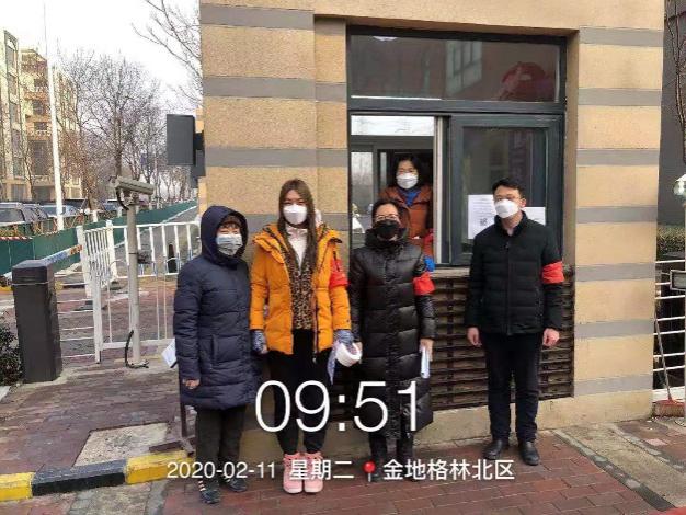 (学系党支部许燕老师为小区进出居民测体温)