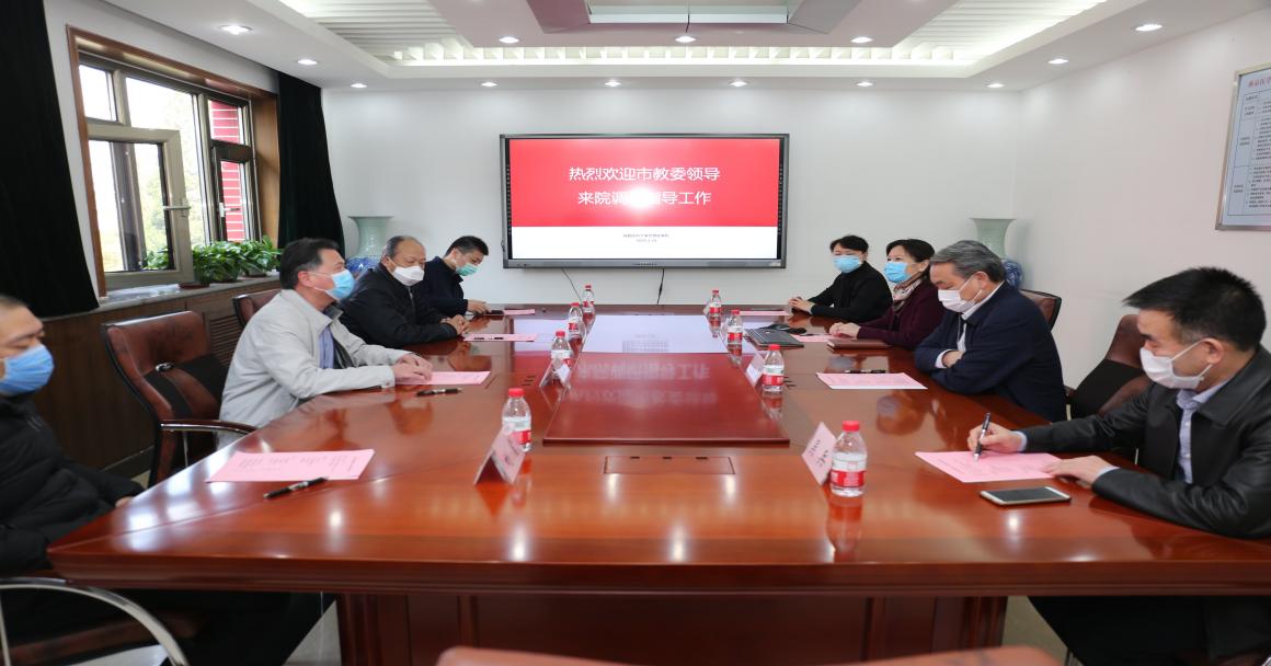 3月24日下午,市教委副主任黄侃、高教处处长刘霄、职成处处长王东江、余俊一行到同人小说 展开深入调研,同人小说 副校长王松灵院士、教务处处长武艳、同人小说 党委书记吴兵、院长杨红一同参加调研。