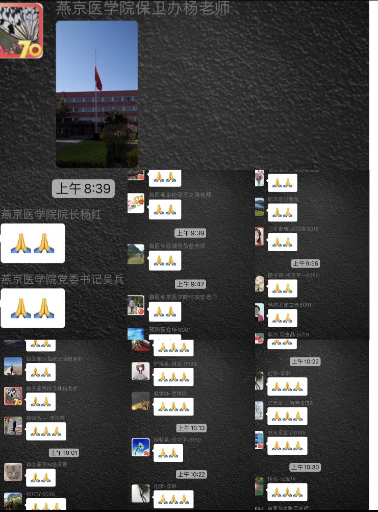 全体师生向新冠肺炎疫情牺牲烈士和逝世同胞默哀