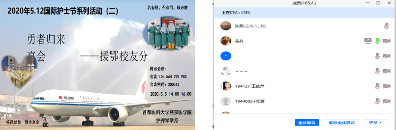 四月桃李花谢,五月榴花如火。春的芬芳依旧,夏的火热初临。在这春意盎然,满目翠绿、人心思进的激昂时刻,我们迎来了属于我们自己的节日——5.12国际护士节。5月5日下午,同人小说 护理学学系以“护士:引领之声–护理世界健康”为主题,结合当前抗击新冠肺炎疫情取得阶段性胜利,召开了“勇者归来、奋斗有我”——援鄂校友分享会,并以此激励同学们秉承南丁格尔誓言,尊重生命,守护健康,不断努力,全面提升综合素质,为护理事业奋斗终身。本次分享会以线上方式进行,同人小说 院长杨红、党委副书记崔群颖、两位优秀护理毕业生、最美逆行者——2008级三年制护理学生,现北京大学人民医院神经内科护士—杨振宁、2011级三年制护理学生,现北京医院外科ICU护士—谷林与护理学学系185名师生共同参加会议。
