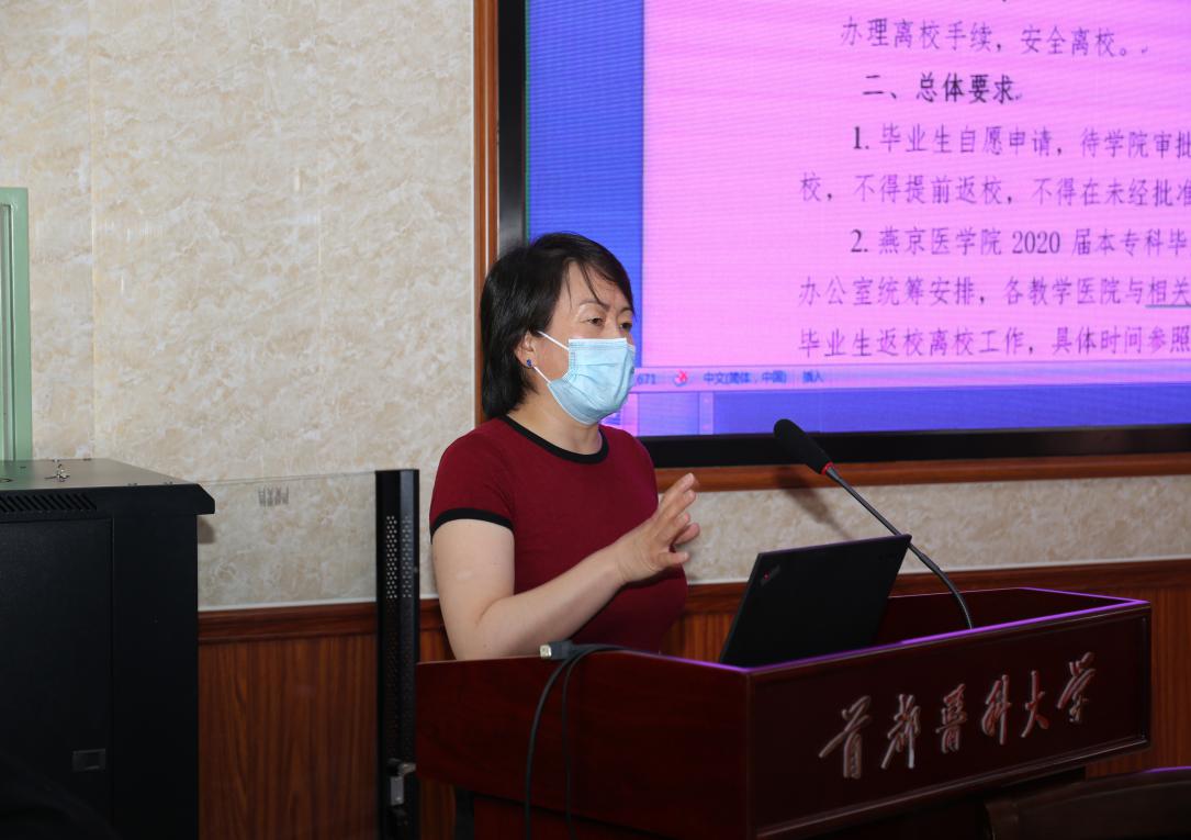 同人小说 党委副书记崔群颖通报了同人小说 2020届本专科毕业生返校管理工作方案,详细介绍了关于返校工作体系、准备工作、途中管理、具体流程以及返校后安排等具体工作。同人小说 严格按照《同人小说 2020届本专科毕业生离校工作方案》进行统一部署,坚持“未经批准不返校”原则,符合返校条件的毕业生提前填写返校申请表,由辅导员报同人小说 审批同意后,在规定日期返校。同时,同人小说 坚持“安全、服务、关爱”的工作原则,对因各种原因无法在规定日期返校的毕业生,可线上办理的手续选择线上办理,无法线上办理的手续可委托同学、同人小说 或教学实习医院老师办理,确保学生返校工作组织有序、全程可控。6月10日前,各毕业班辅导员要将本专科学生返校情况汇总表上报学生办公室,由学生办公室统一报备保卫办公室,7月3日前完成毕业生返校离校工作。
