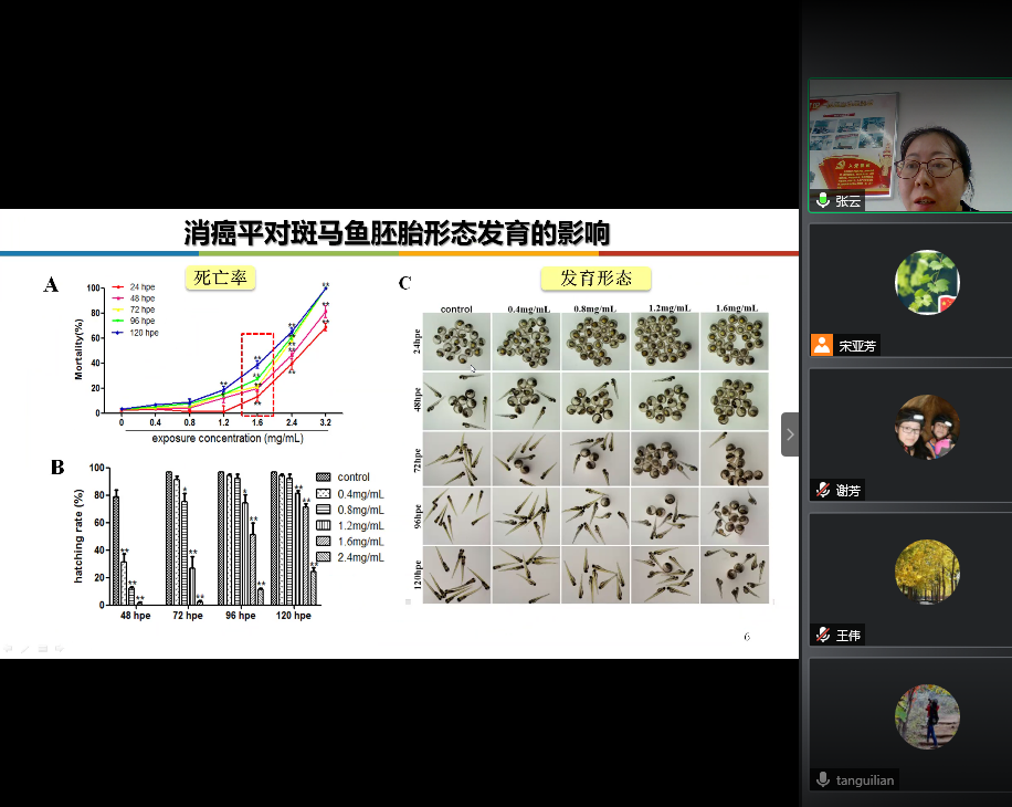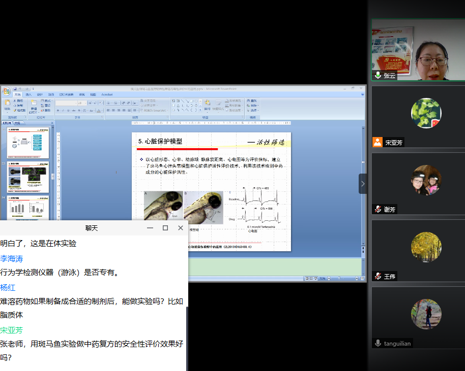 为促进我院教师开展基于斑马鱼实验技术的相关科学研究,深入了解斑马鱼实验模型在药物活性筛选与毒性评价中的应用,7月3日上午,同人小说 检验学学系特别邀请山东省科同人小说 首席研究员张云主任通过腾讯云端会议,开展题为《模式生物斑马鱼在药物活性筛选与毒性评价中的应用》的学术讲座。杨红院长主持会议并讲话,同人小说 50余位教师参会。