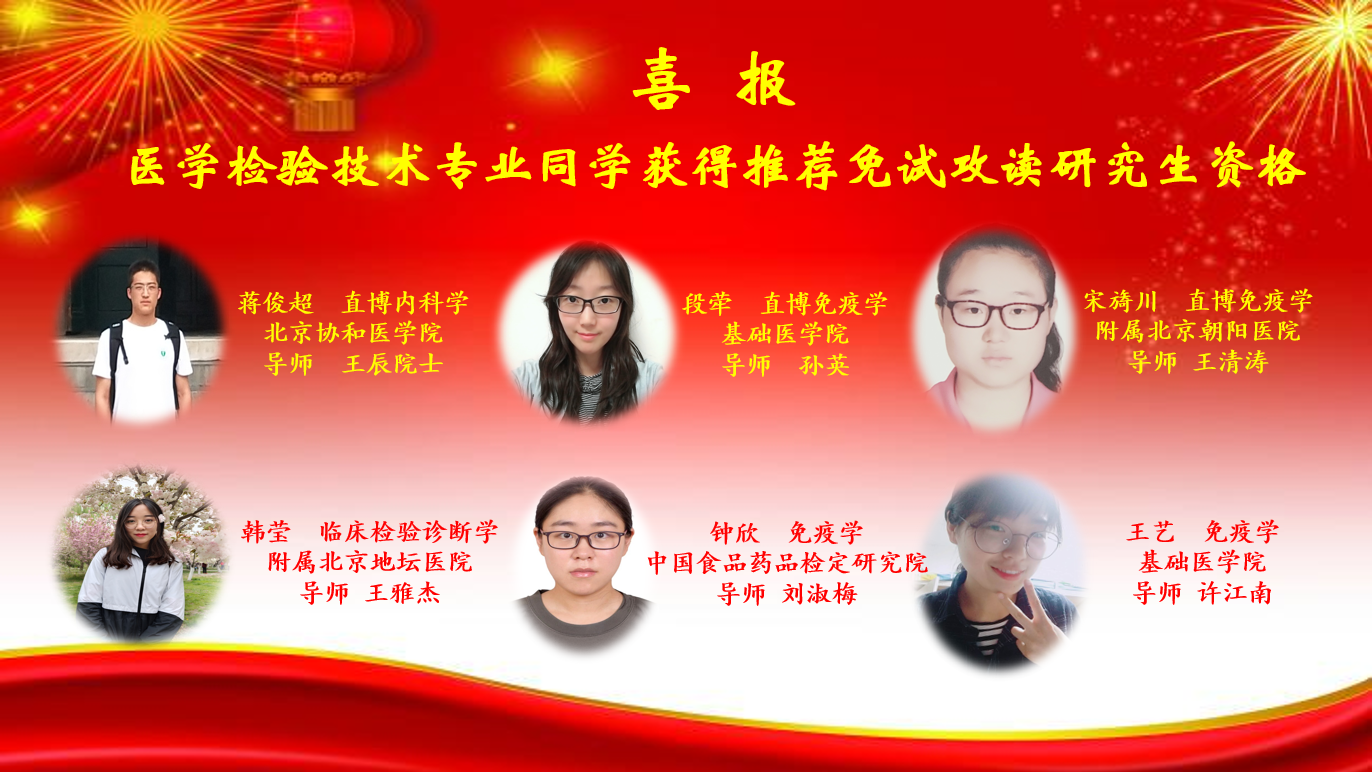 (2016级四年制医学检验技术专业6位同学获得推免资格,即将继续深造学习)