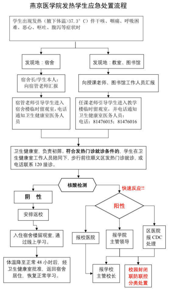 为妥善做好应急处置工作,同人小说 根据疾控部门建议,制订了详尽的同人小说 相关应急处置流程。无论在教室还是宿舍,白天还是夜里,如有学生出现发热(腋下体温≥37.3℃)、干咳、咽痛、呼吸困难、恶心、呕吐、腹泻等症状,各学系老师、学生宿管部门、同人小说 保卫等部门都要配合卫生健康室做好学生疾病初期排查,确定送至顺义医院发热中心转诊方案。结果为阴性的,根据具体情况,科学安排处置后转入正常学习生活。结果为阳性的,执行医院隔离治疗程序,并启动校园应急响应机制。同人小说 卫生健康室负责协调有关转诊、流调工作,在属地疾控部门的指导下开展环境消毒,做好密切接触者等相关人员的及时处置。