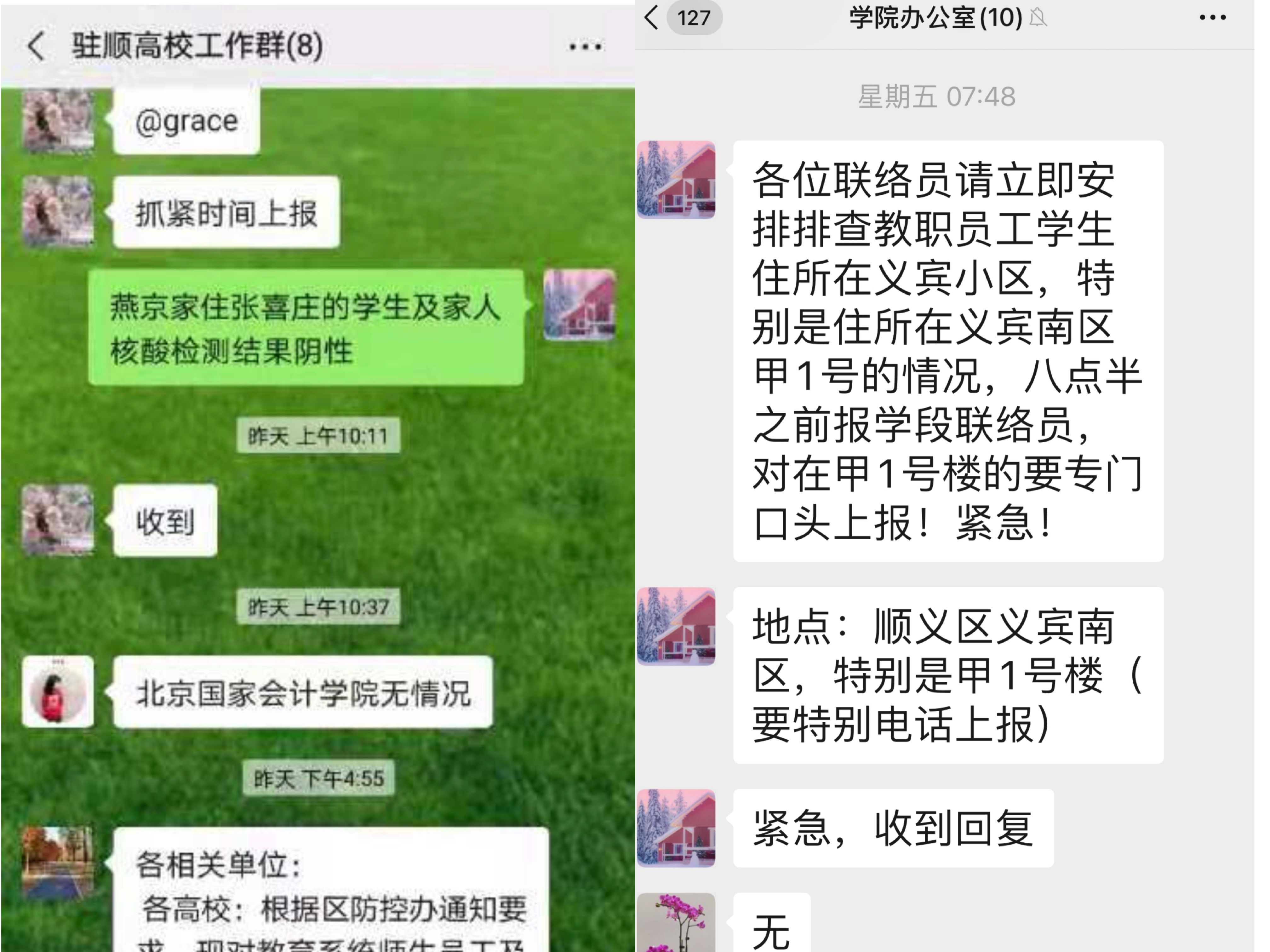学校领导高度关注顺义区疫情情况,校党委书记呼文亮第一时间致电同人小说 ,了解同人小说 疫情防控相关工作,在肯定同人小说 工作的基础上,进一步提出了具体要求。同人小说 党委多次召开专题工作会,科学精准落实各项疫情防控工作。经过同人小说 党委前瞻性的工作部署,本学期伊始,同人小说 将教学工作调整为一周六天课,截至12月25日,除了2名西藏学生以外,本学期目前在同人小说 内住宿的1258名在校生均已全部离校,全院教职工均已启动居家办公模式。