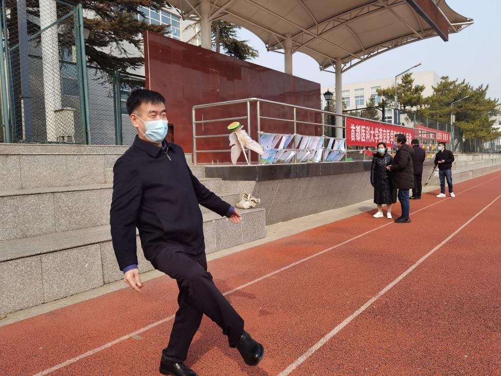 经过了一个和疫情抗战的假期,久未见面的同事们亲切交谈、说笑,顺着跑道边走边交流各自的工作和生活。他们在益智有趣的谜语区猜谜语,不时驻足思考,猜对了的喜悦交织着猜不出的少许遗憾;在古诗词挂画前赏读,或齐声朗诵,或独自吟唱,诗中的春景映着春天的气息,让每个人都感觉兴趣盎然;在踢毽子区,每个人都兴致十足地踢起毽子,在春风中尽情舒展自己的身心。