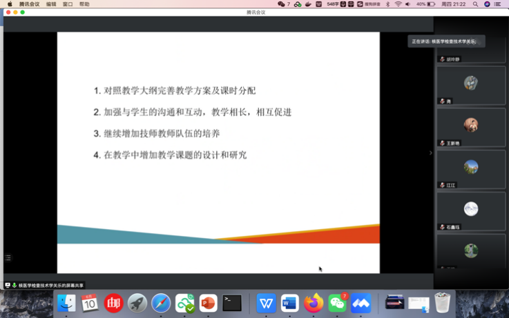 6月10日晚,医学影像学学系组织本学系授课的12名临床专业课程教学干事以及负责课程助教任务的学系老师召开了本学期课程总结和考前动员线上会议,部分课程负责人也出席了会议,这也是医学影像学系的基础、临床联合教学研讨会及临床教师教学能力培训会,此前已成功举办两届。