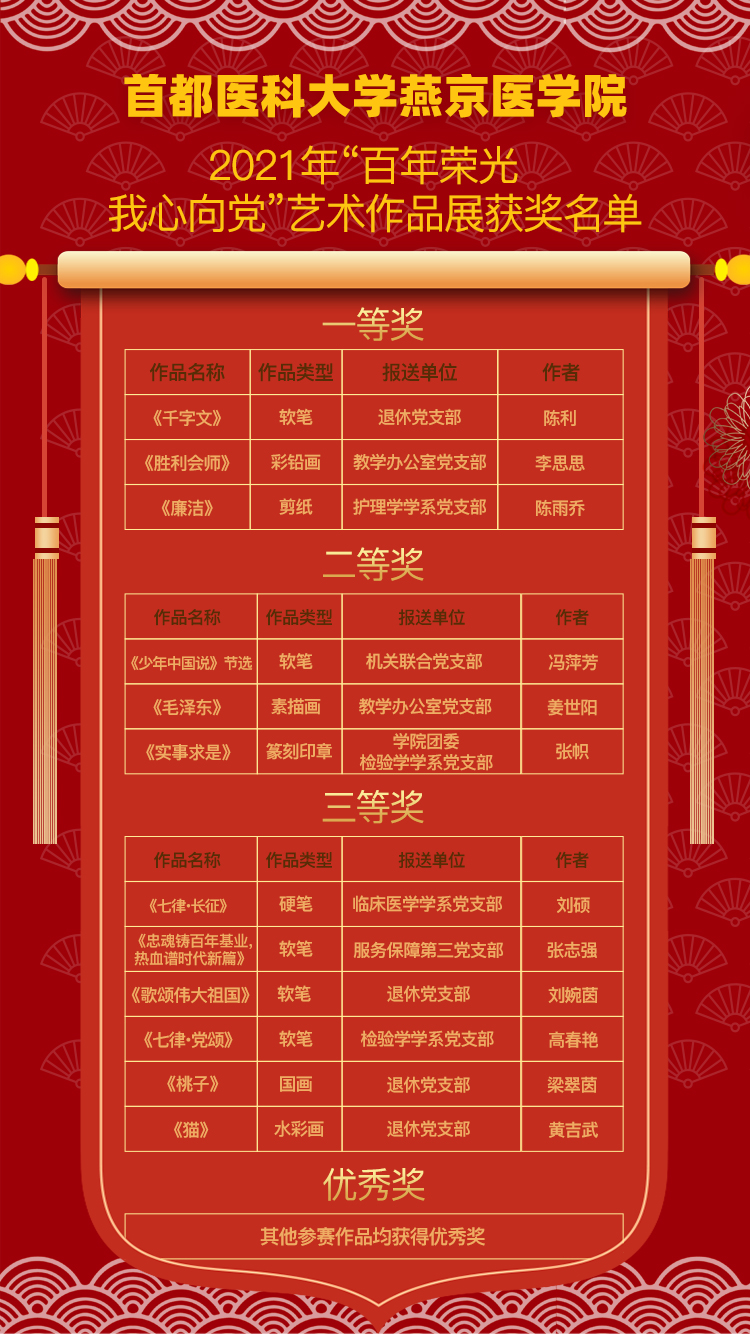 本次主题展览激励了同人小说 广大师生党员干部群众用党的百年奋斗历程和伟大成就鼓舞斗志、明确方向,用党的百年光荣传统和优良作风坚定信念、凝聚力量。最终,经同人小说 专家评审团和师生代表投票,共选出一等奖3名,二等奖3名,三等奖6名和数名优秀奖。