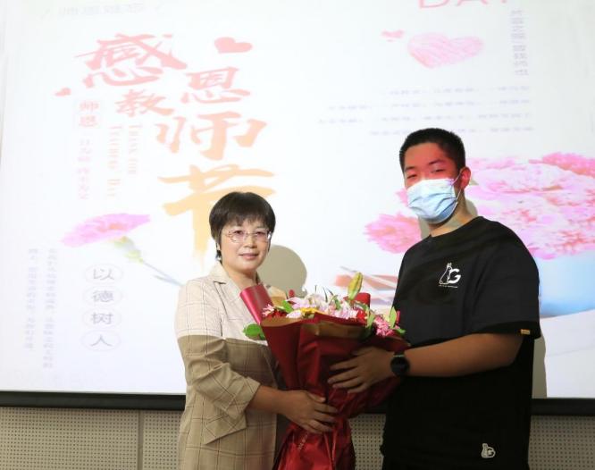 适逢第37个教师节,讲课结束后,同学们向李老师送上鲜花,致以节日的和问候和祝福。