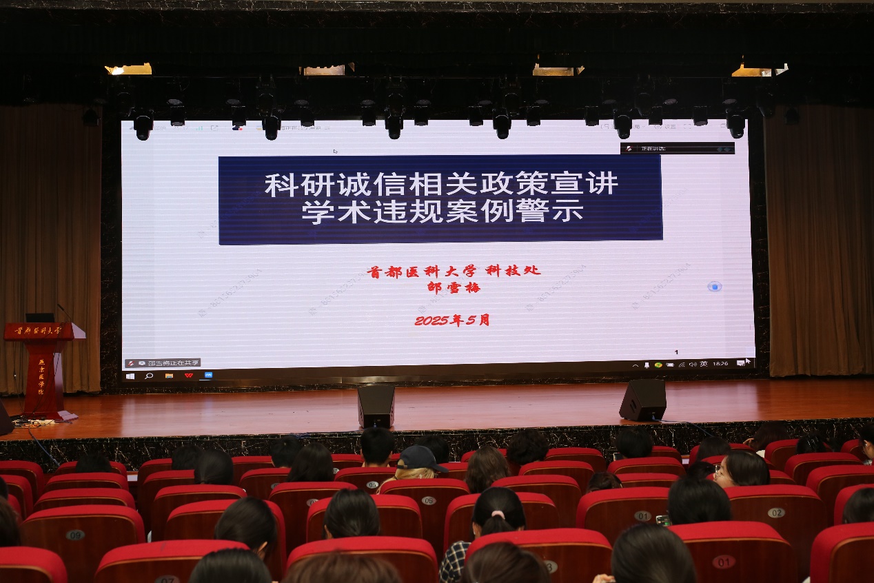 2025年5月15日,同人小说 邀请学校科技处邵雪梅处长面向同人小说 本科生开展科研诚信教育讲座。同人小说 党委副书记、院长杨红主持会议,线上线下共600余名学生聆听了讲座。
