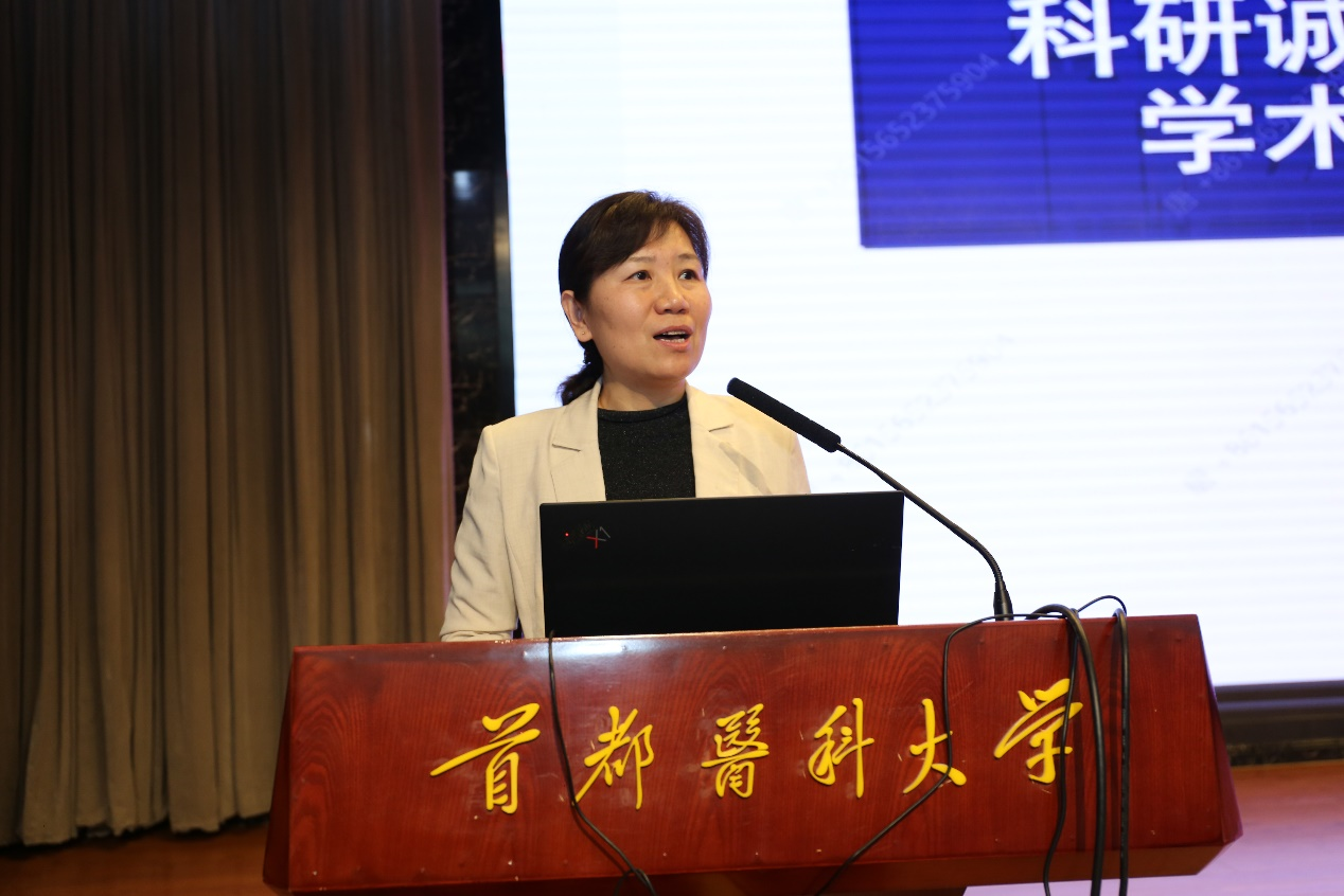 邵雪梅先后介绍了国务院办公厅印发的《关于进一步加强科研诚信建设的若干意见》及科技部等二十二部门联合印发的《科研失信行为调查处理规则》《医学科研诚信和相关行为规范》《人类遗传资源管理条例实施细则》《负责任研究行为规范指引》《科研诚信规范手册》等相关文件,深入浅出地向学生讲解了科研活动中涉及的实验记录、医学伦理、生物安全、论文投稿等学术规范和学术诚信问题。同时,通过一些真实的学术违规行为案例,警示同学们要以严谨态度对待学术研究,时刻坚守科研诚信底线,杜绝学术不端行为。