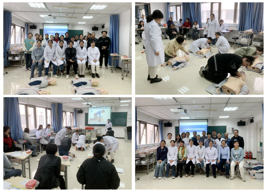 所有实验室管理人员及实验技术人员,组织开展了基础生命支持(BLS)的培训。此次培训共举办两场,每场18人,对通过考核人员授予“健康从业人员基础生命支持学员课程证书”。