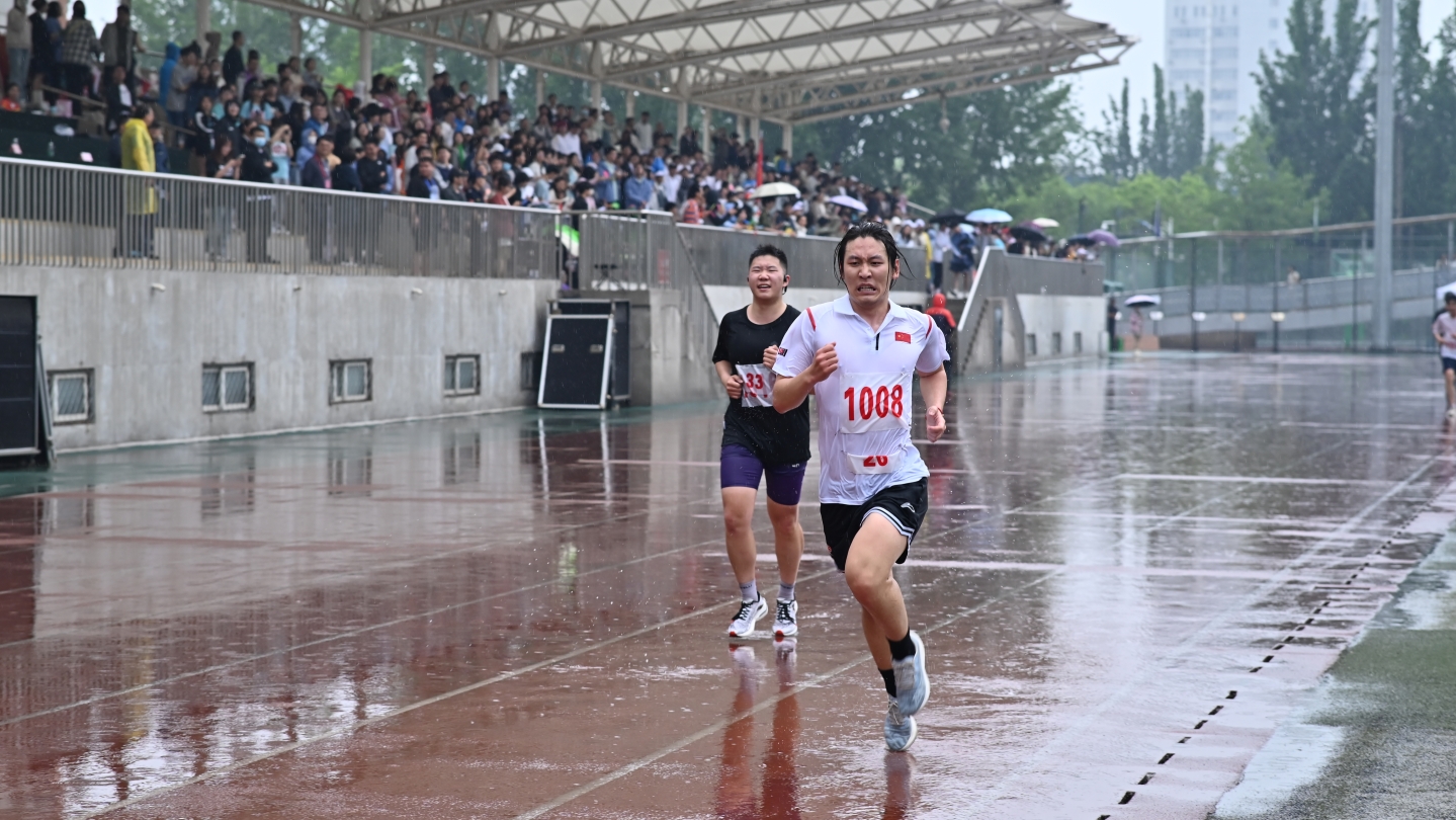 我院张翊时和赵学恬两位同学在大雨中参加男子5000米比赛