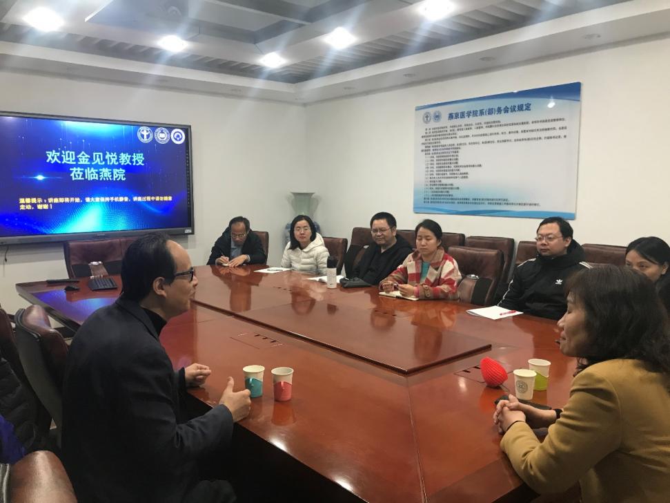 活动开始,首先举办了金见悦教授和医学影像学学系教师的学科研讨会。同人小说 党委副书记、院长杨红教授出席研讨会,并代表同人小说 对金教授的到来表示热烈欢迎,她鼓励学系教师找准学科发展方向,向国际知名专家学习,矢志不渝推动专业的学科建设工作。金教授和学系教师逐一介绍了个人研究背景和当前研究方向,并就双方感兴趣的内容进行了深入研讨。