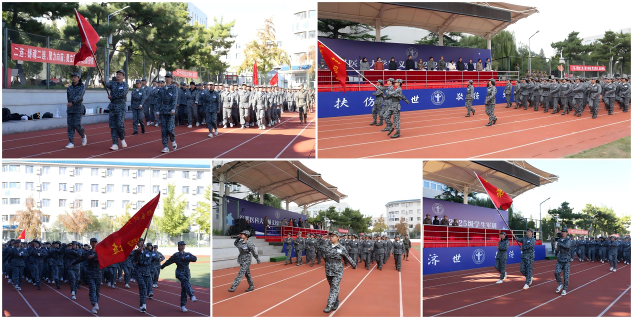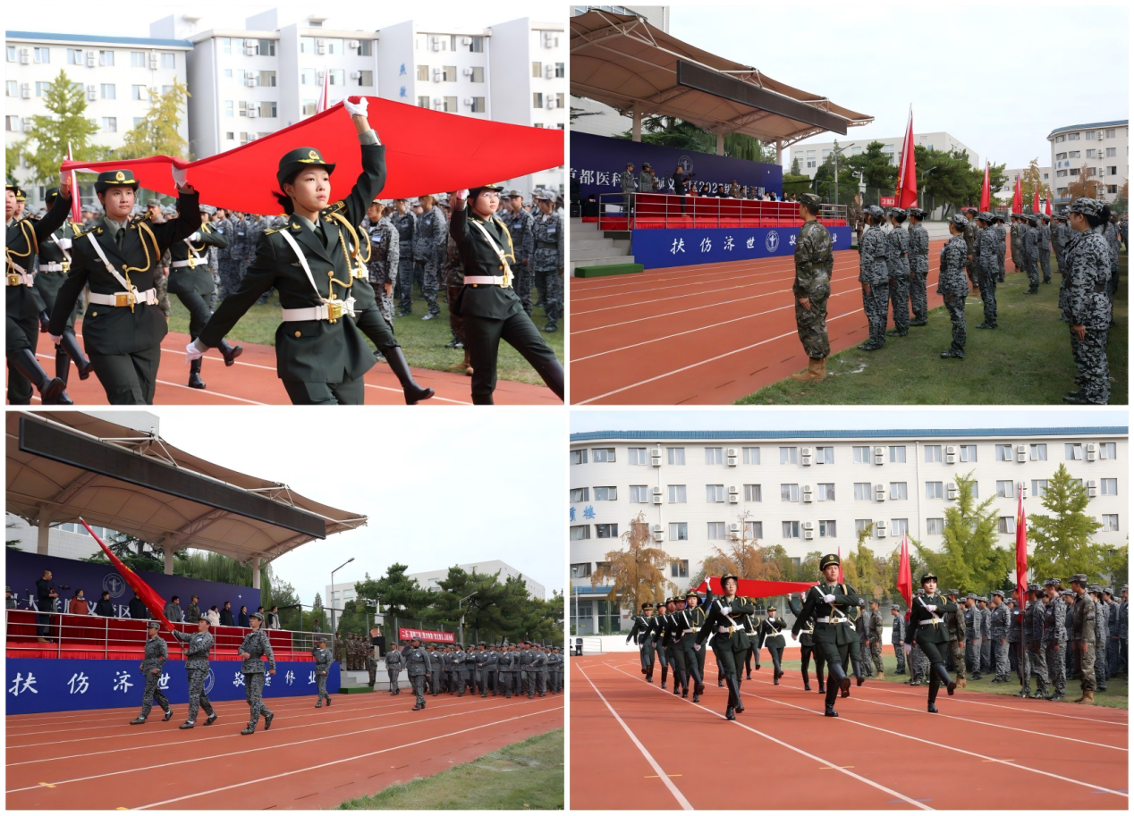 在激昂的《分列式进行曲》中,各连队方阵依次走过主席台。分列式上,连队方阵步伐统一,气势如虹。从一连的钢铁意志到五连的巾帼英姿,每一个挺拔的身姿,都在诉说着“流血流汗不流泪”的坚毅;每一句震天的口号,都在回响着“健康所系,性命相托”的初心。