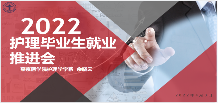 为推动2022届护理毕业生顺利就业,4月3日下午,护理学学系在线上举办了毕业生就业工作推进会。会议由护理学学系党支部书记余晓云主持,护理学学系教师、各教学医院班主任老师及有就业指导需求的110余名毕业生参加了本次就业推进会。