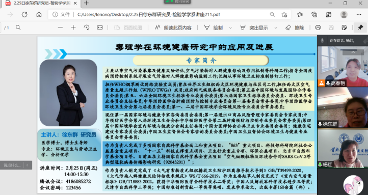 检验学学系在线上认真聆听了这场讲座。同人小说 院长杨红院长讲话,她认为,这次讲座使我们对毒理学在环境健康领域可做的、正在做的和未来站在更高角度可以做的事情有了深刻了解,对我们今后开展相关的科研工作具有积极的启发作用。