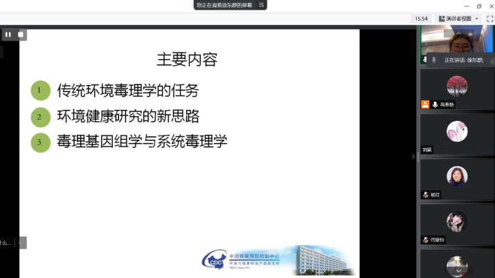 讲座中,徐东群研究员从传统环境毒理学入手,介绍了传统环境毒理学的内容、任务,并分析了传统毒理学的缺陷。针对传统毒理学的缺陷,徐研究员提出,环境健康研究的新思路必须遵循环境—基因—表型的思路进行。最后,她还结合现代组学的技术、特性详细介绍了毒理基因组学与系统毒理学的内容和它们的应用。