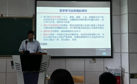 讲座中,杨宝学教授引用习近平总书记的话向同学们阐明了医学的重要性,“没有全民健康就没有全面小康”“健康是老百姓的基本需求,也是最重要的需求”,激发了同学们对医学学习的使命感、责任感。