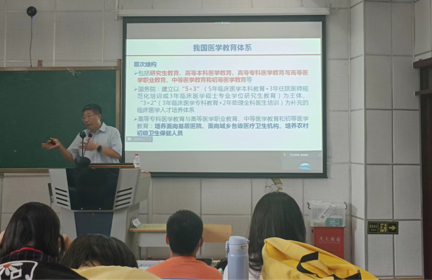 鉴照历史,开创未来。杨教授通过介绍中国现代医学体系从西方医学的传入、现代医学体系的初创、建立与发展到改革与完善四个阶段,带领同学们重温了1643年至今三百多年我国医学体系的发展历程,并介绍了我国医学教育教学过程,夯实了同学们对所学专业教育体系的知识根基。
