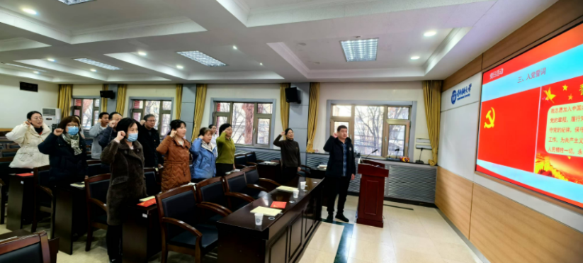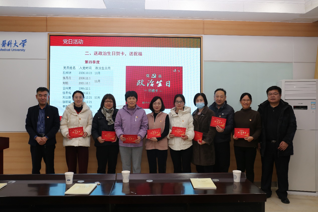 活动第二项内容是为入党时间在10-12月的党员过政治生日,由吴兵、汤海新、鄢雯为党员同志们颁发政治生日贺卡。其后,与会全体党员举手宣誓,重温入党誓词。