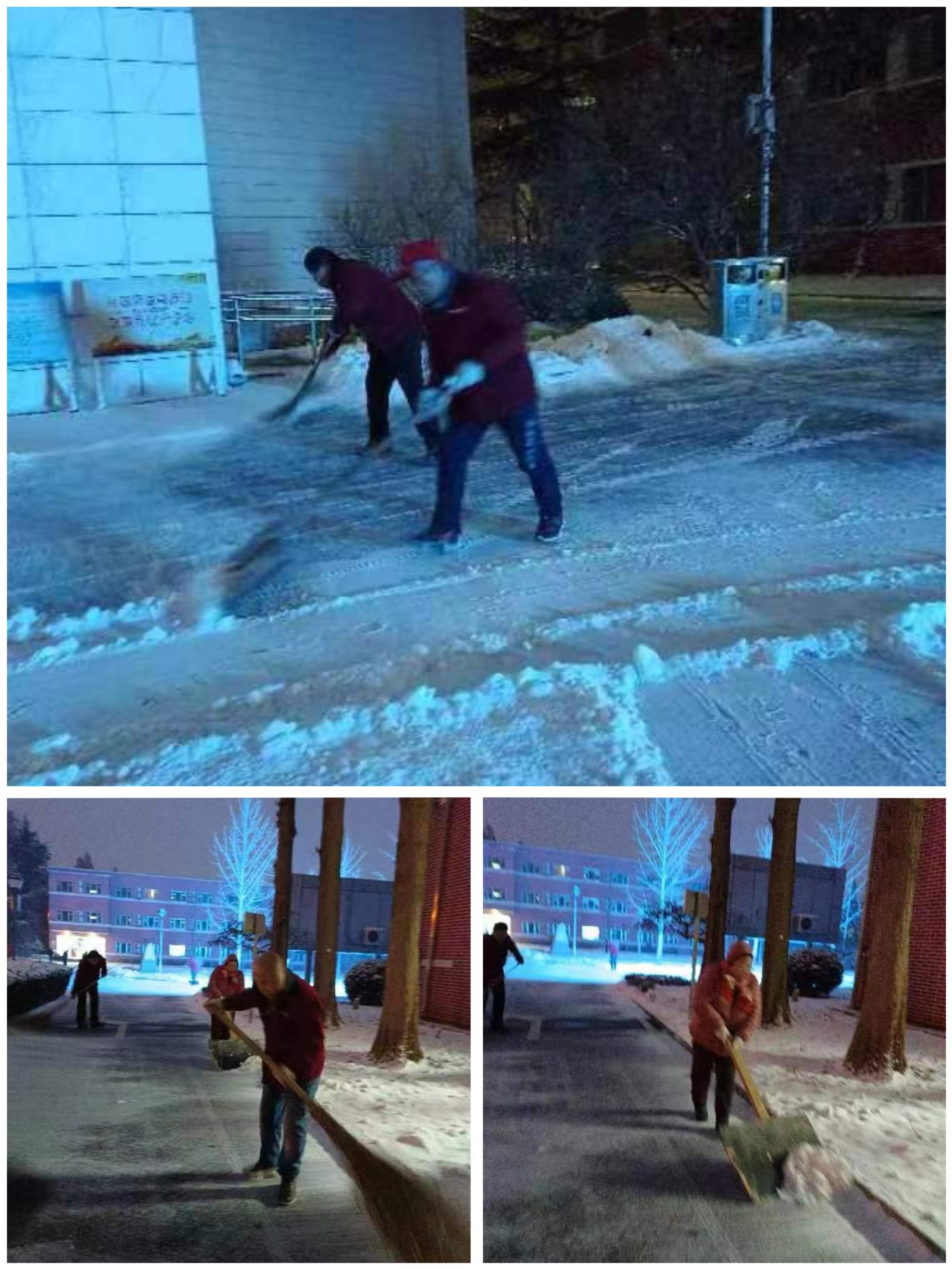 13日,同人小说 后勤保障部门多措并举,积极应对,针对同人小说 主干道、楼顶排水处和出入口等公共区域的积雪进行清扫、铲除,全方位保障了师生的出行安全。
