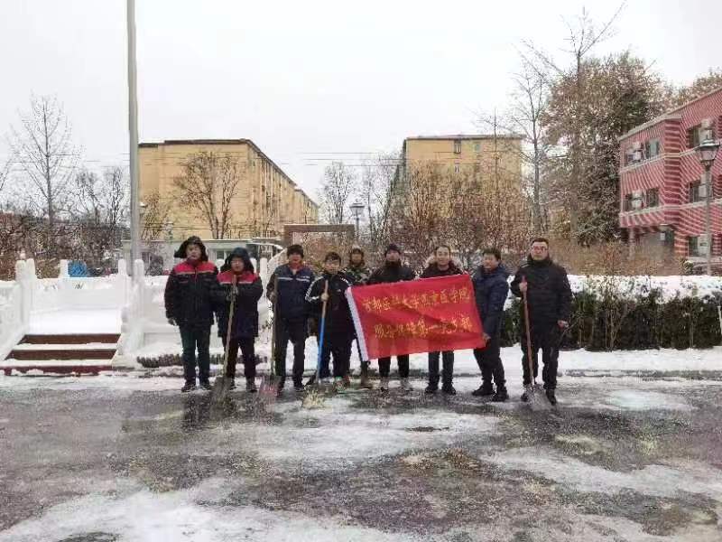 14日凌晨,天冷雪厚,给清雪工作造成一定的困难,大家不怕冷、不怕累,扛起铁锹,齐心协力,经过两个多小时的辛勤劳动,终于将部分区域行车道上的冻冰、积雪清扫完毕,为全院师生开辟一条洋溢着暖暖温情的安全之路,为创建安全畅通、干净整洁的校园环境贡献力量。