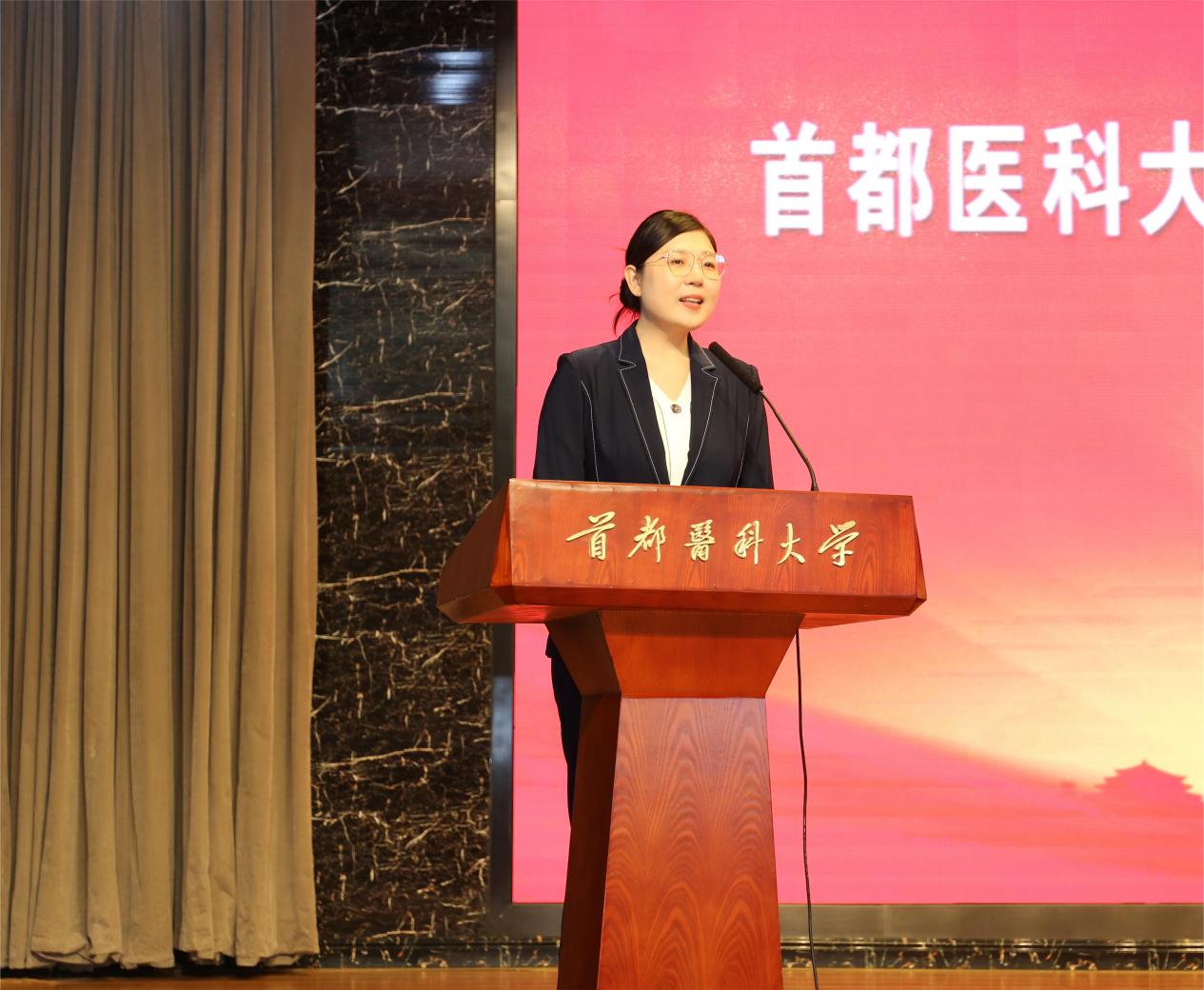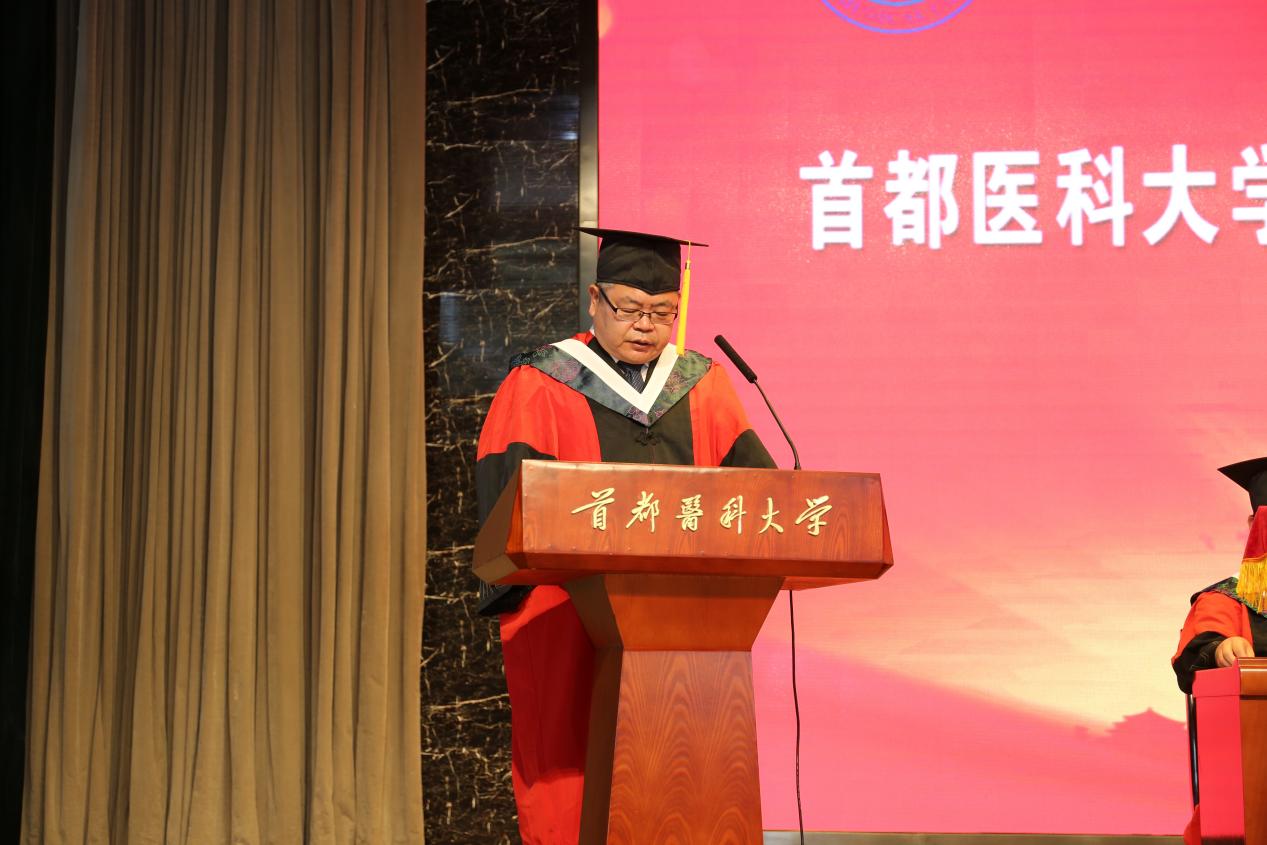 预防医学学系龙鑫作为教师代表发言,希望同学们能够谨记习近平总书记的谆谆教诲,功崇惟志,业广惟勤,坚定不移地听党话、跟党走,做有理想、敢担当、能吃苦、肯奋斗的新时代好青年;希望同学们永远不要从学习中毕业,在未来的医者之路上,要严谨务实、勤学深思、努力钻研,不断创新,使自己的医者人生与健康中国的建设与和发展同向同行,熠熠生辉。