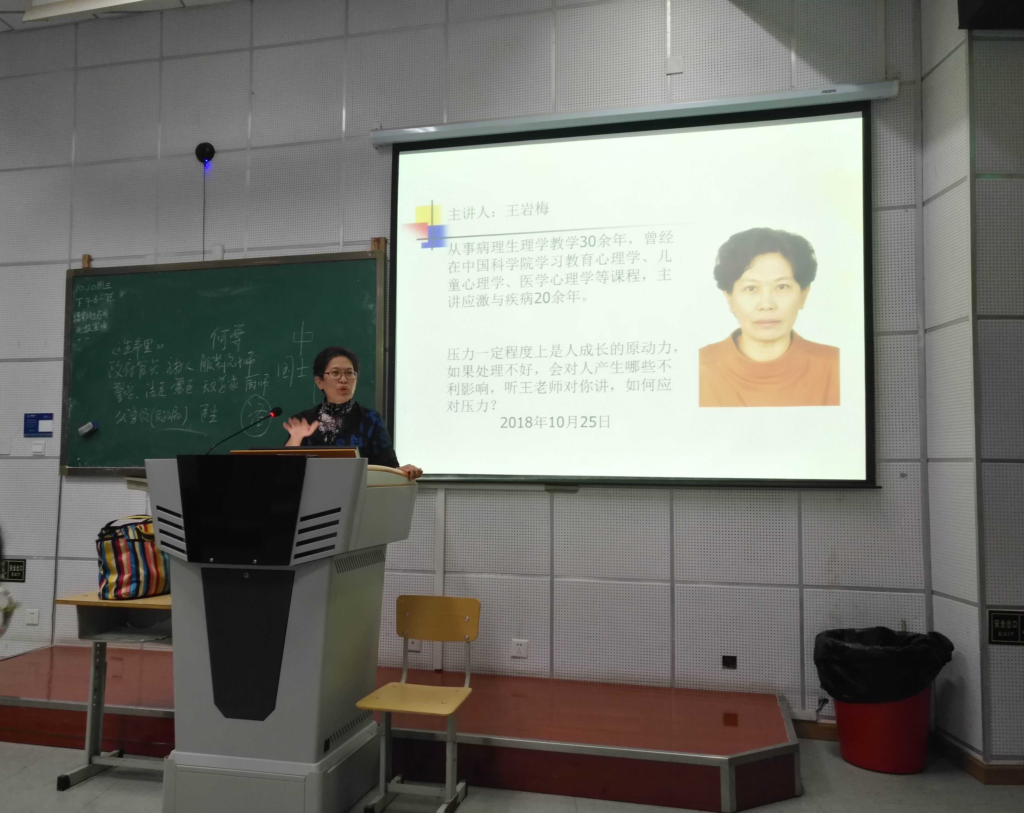 面对压力许多人会有各种各样的困扰,针对这个问题,同人小说 病理生理学教研室王岩梅副教授,于10月25日晚给师生员工做了一次生动的诠释。她曾经在中国科同人小说 学习教育心理学、儿童心理学、医学心理学等课程,主讲应激与疾病课程20余年。她从20世纪美国生理学家cannon(坎农)和加拿大的病理生理学家selye(塞里)讲起,从生理到心理,再从心理到生理,从医学生理学的角度,对人在内在与外在压力作用下产生的不同反应进行剖析。