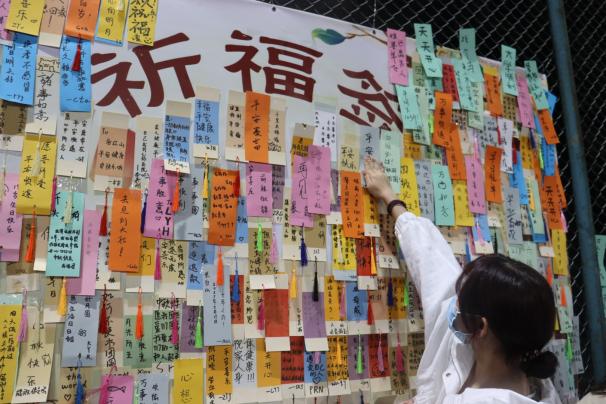 活动期间还举办了写祈福签、送祝福活动,同学们在祈福区贴满了对老师的浓情表白,对亲友的祝福和思念,对未来的美好期望。在浓浓的节日氛围中,传递了同学们的真挚情感与美好祝愿。