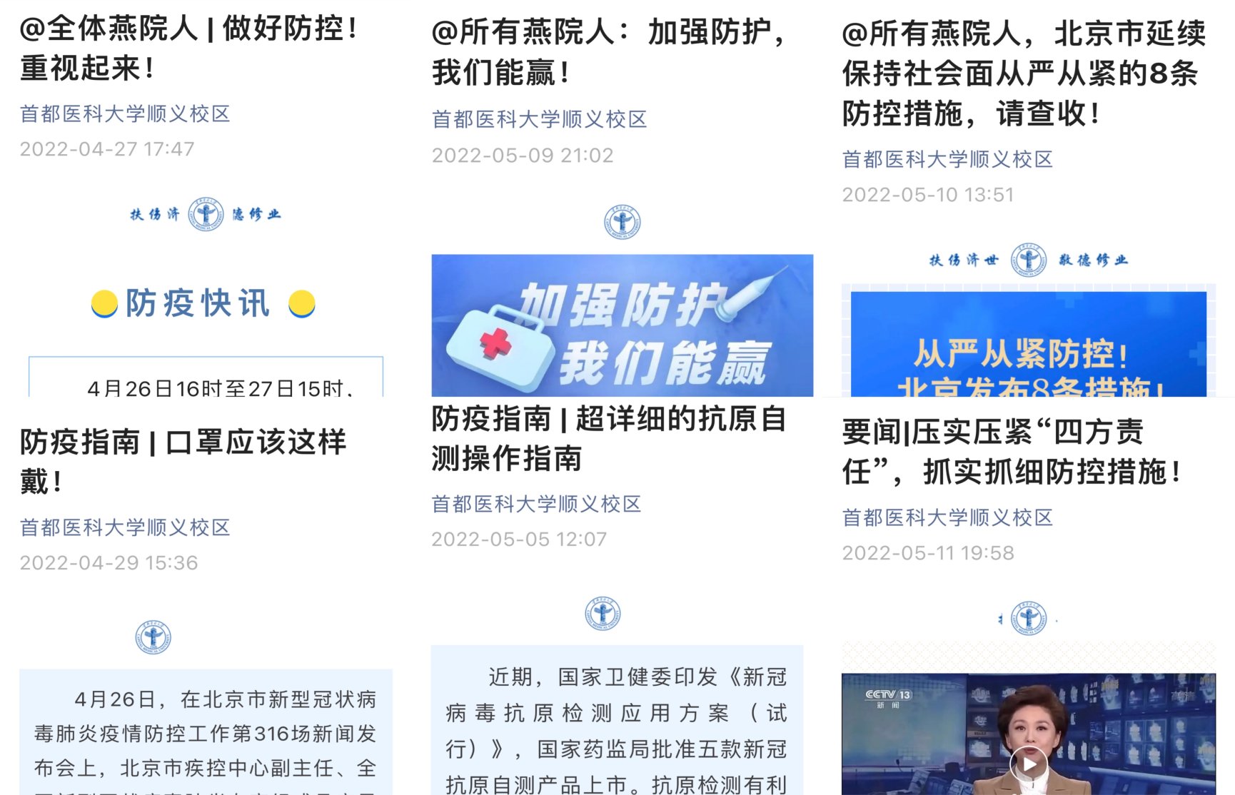 5月9日,顺义区突发聚集性疫情,首都防控形势严峻复杂,同人小说 在学校领导的高度关注和关心指导下,坚持“预”字、未雨绸缪,第一时间快速响应,校园封闭,不进不出;坚持“快”字、快速溯源,最快速度排查掌握全部师生涉及疫情情况;坚持“责”字、有责必履,同人小说 党委成员24小时轮流值守校园,靠前指挥。在疫情防控的严峻考验面前,同人小说 党委严格落细意识形态工作责任制,强化落实单位责任、部门责任、个人责任;坚持“联”字、形成合力,通过公众号,钉钉工作群,微信群,发布疫情防控各项指令和工作指引,加强正面引领,加强关心关爱,师生同心协力,凝聚团结抗疫最大同心圆。