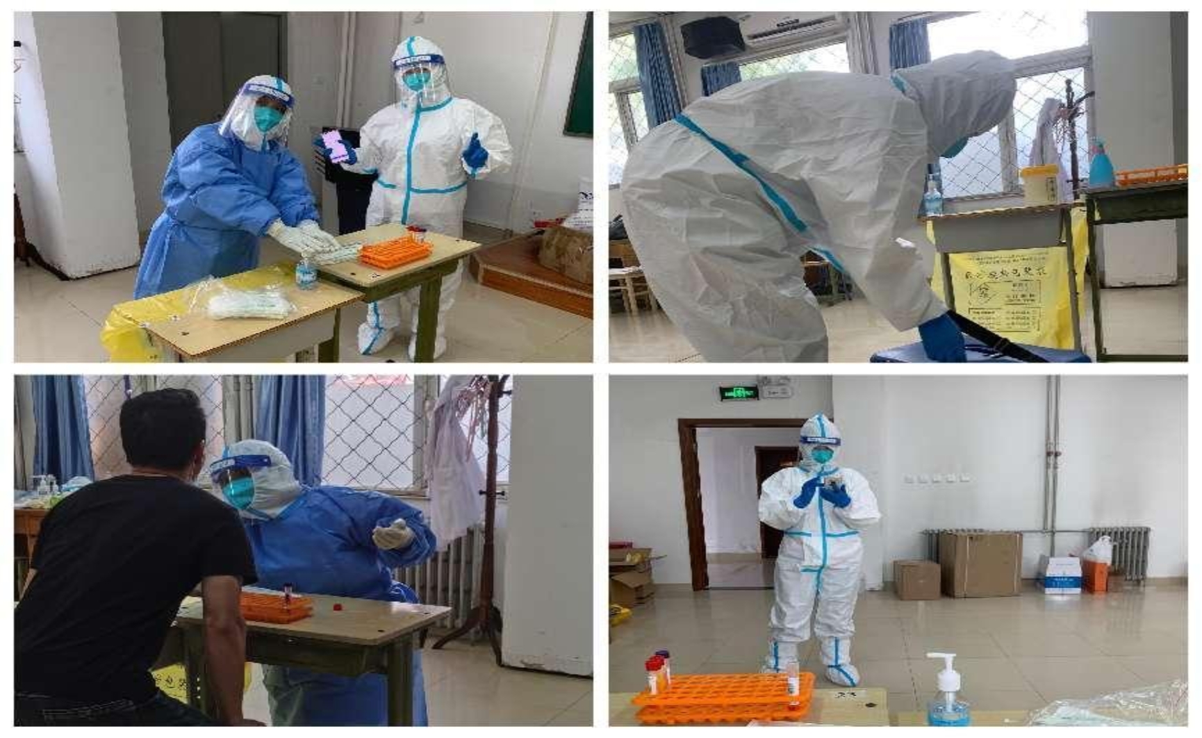 组织应急核酸采样志愿服务队定期对校园常驻人员进行核酸采样送检,各位志愿者们奋战在核酸采样一线,奋力守护师生健康和校园安全。