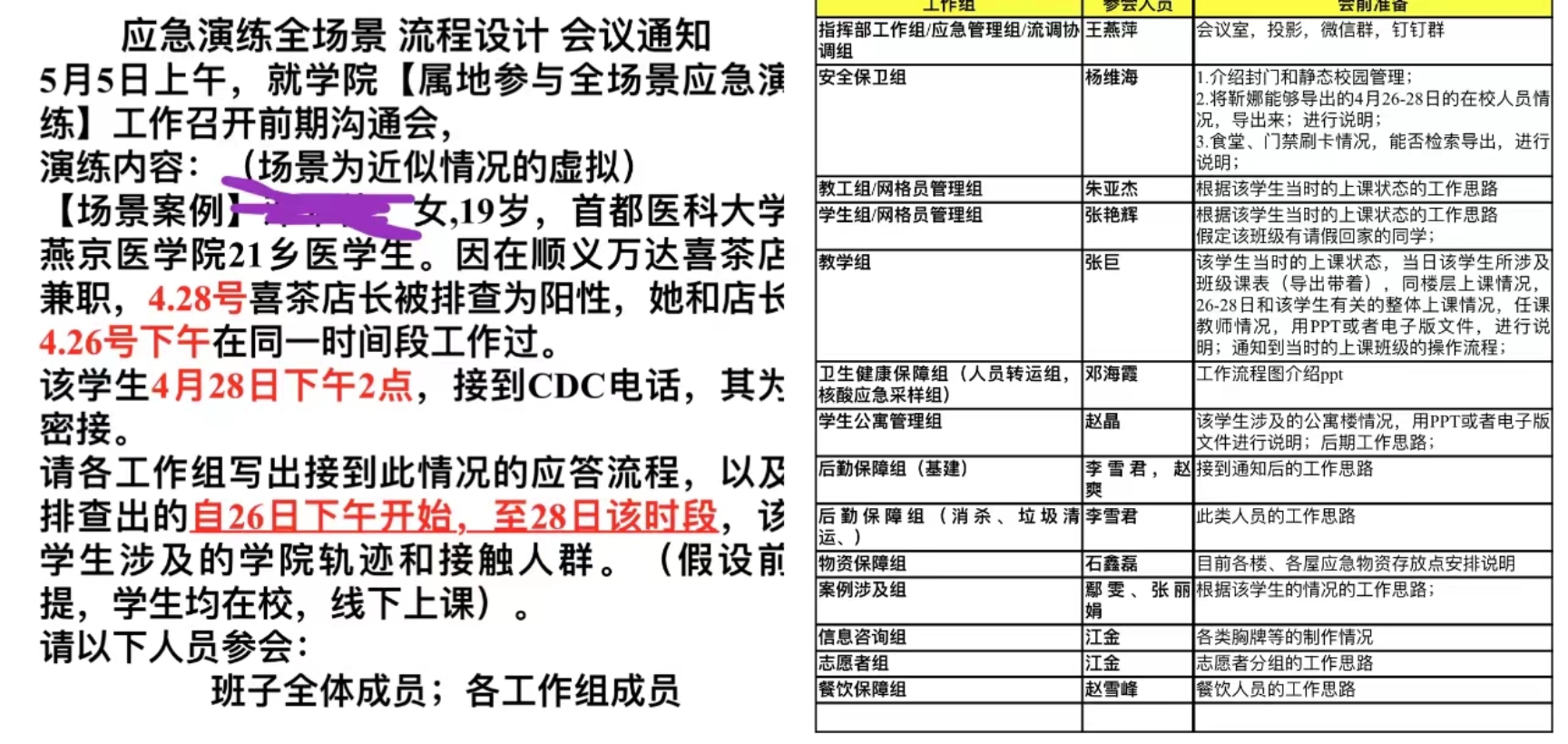 为进一步检验应急处置能力,切实保障师生员工生命安全,4月15日下午,同人小说 组织开展多场景、多环节、多情境疫情防控应急演练。本次演练假设情景为同人小说 接到属地疾控部门通知有一名学生核酸检测初筛为阳性,同人小说 疫情防控领导小组获知消息后立即上报同人小说 领导,随着应急处置指挥部一声令下,各工作组紧急就位,迅速应战。