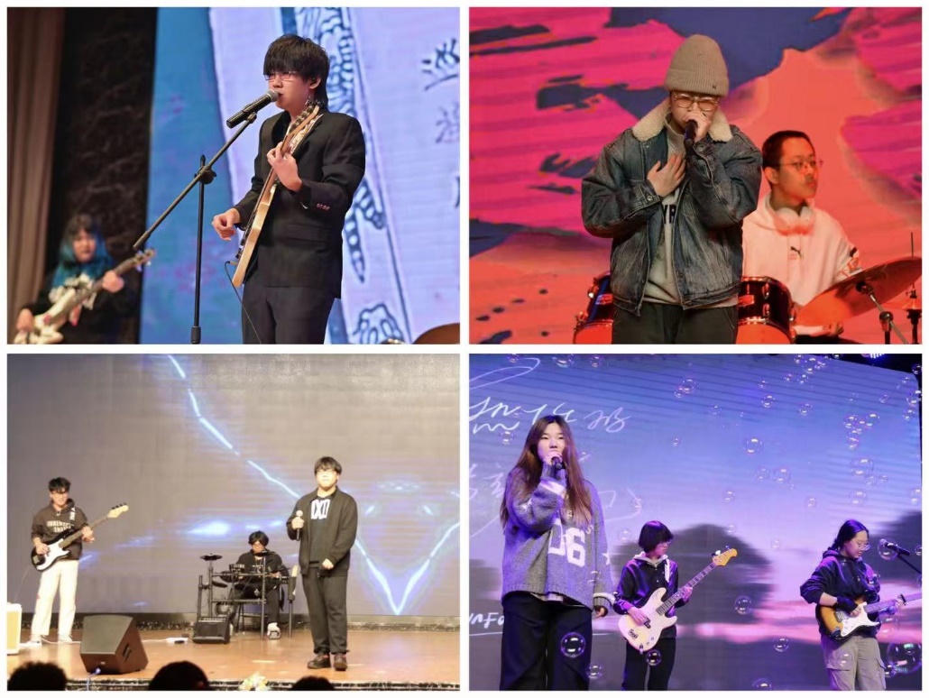 在歌曲部分,师生用声音点亮梦想,述说情怀。开场舞《salute》青春四射,瞬间点燃现场氛围,为晚会拉开了序幕。男女深情对唱的《不该》,诉说着爱而不得的痛楚;嗓音温柔,独树一帜的《最长的电影》;铿锵有力却又充满柔情的《如愿》;甜美嗓音英文演唱的《光年之外》;充满摇滚元素的《找自己》;《梦特别娇》、《逆战》、《大石碎胸口》;柔情似水的《在想你的夜我告诉自己》;表达对祖国浓浓热爱的《最美是你》、《共筑中国梦》,每首歌都赢得了观众热烈的掌声。