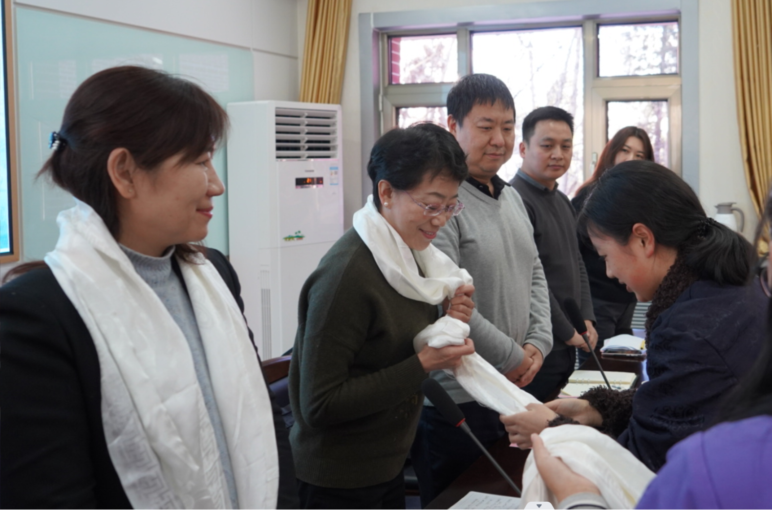 会议上,张瀛处长与杨红院长均向西藏驻京办表达了诚挚的感谢,希望促进合作,落实相关政策,帮助西藏学生成长。西藏同学向各位出席的领导敬献哈达,表达了他们对老师深深的敬意与祝福。西藏驻京办对我院交流座谈会和西藏学生工作的组织、细致贴心的会务安排和周到的服务给予高度评价,表示将持续加强合作。