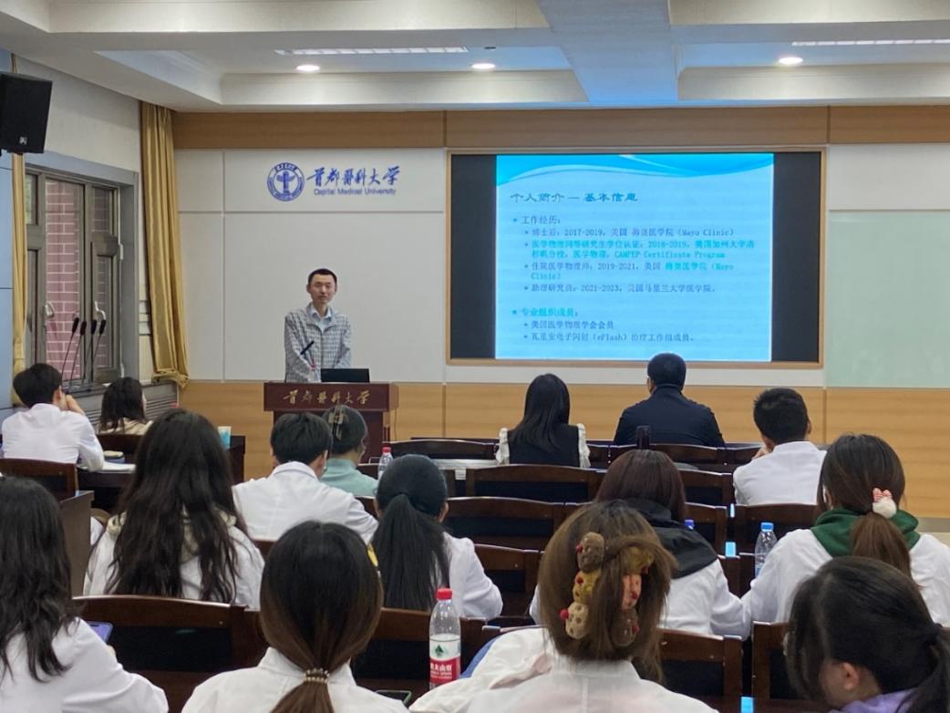 4月29日,医学影像学学系邀请美国内华达大学的天体物理学博士、马里兰大学质子放射治疗中心医学物理师邓巍博士来我院举办学术讲座并开展交流活动。