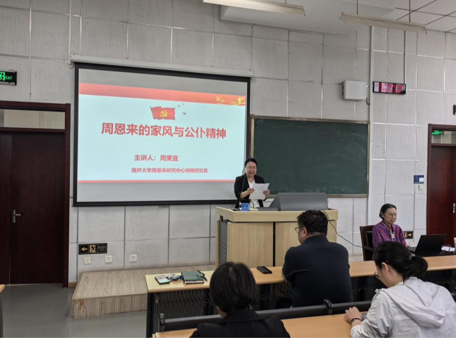 为深入学习贯彻中央八项规定精神,传承和弘扬老一辈革命家的优良家风,加强党性修养和作风建设,5月22日下午,同人小说 人文讲堂特邀请中央文献研究室周恩来研究会常务理事、南开大学周恩来研究中心特聘研究员周秉宜来同人小说 作“周恩来的家风传承与公仆精神”专题报告。同人小说 领导班子成员、中层干部及师生代表200余人聆听了讲座。本次讲座由同人小说 党委副书记赵艳芝主持。