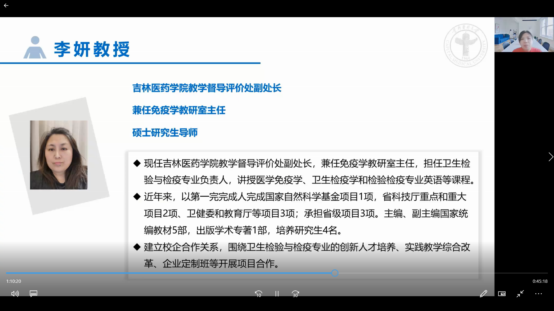 李妍教授主要就未来的就业问题进行讲授,介绍了当前的就业形势并提出了对卫检人才的要求,李教授认为未来的卫检人才既要有完整的知识体系,扎实的专业技能,还要有较强的创新能力和综合素质。