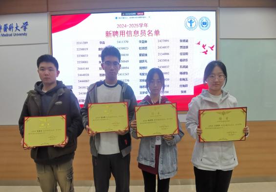 随后,王川宣读了2023-2024学年优秀学生教学信息员名单和2024-2025学年新聘学生教学信息员名单,鄢雯副院长和曾令娥副主任为优秀信息员和新聘信息员颁发了荣誉证书和聘书。