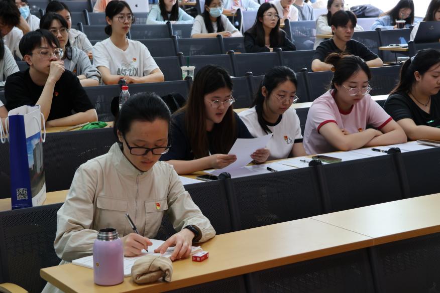 姜佳铃老师激励在场的学生党员、党员发展对象、入党积极分子,要进一步端正入党动机,加强党性修养,发挥党员作用,坚定医学生理想信念,提升医学生专业素养,涵养医学人文精神,为推动健康中国战略、融入人文医学时代、精准医学时代做好准备。