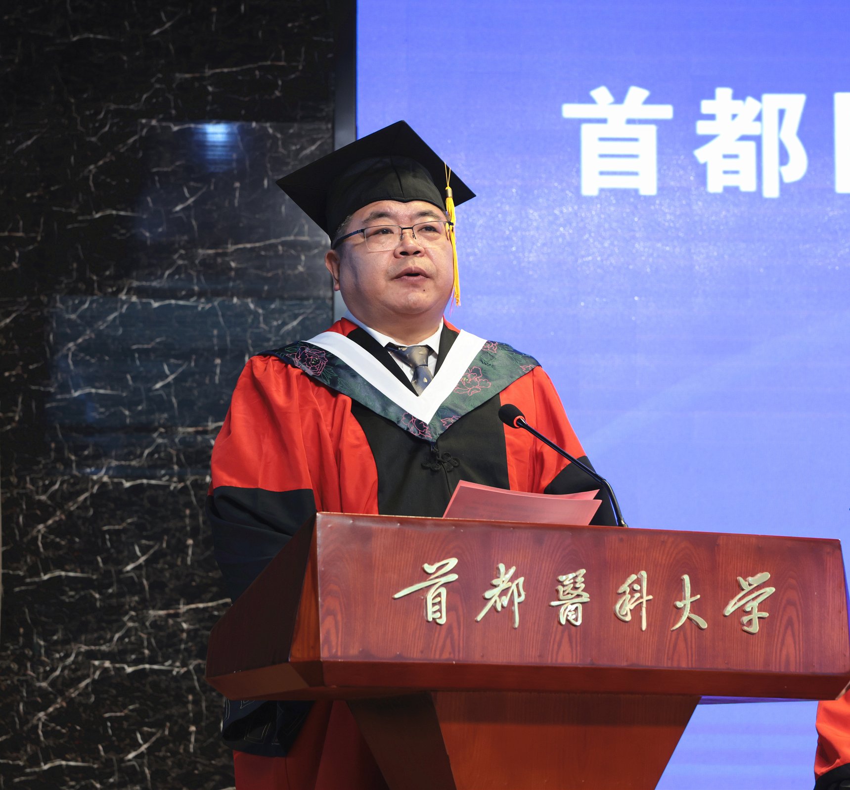 杨红以“开启新的人生之门,攀登新的事业之峰”为题向毕业生致辞,对2024届毕业生圆满完成学业表示祝贺,向辛勤付出的老师、教职员工表示感谢,向一直以来关心支持学生成长的学校领导、各方朋友以及家长们致以敬意。她向即将踏上人生新征途的学子们提出了三点期望:一是打开视野,勤学博思,希望大家从今天开始,在医学的未知世界里勇毅前行,博览群书,锐意进取;二是打开思维,求精创新,希望大家在时代发展的洪流中,不做过客、不当看客、敢做先锋;三是打开胸怀,明德励志,希望大家在推进强国建设、民族复兴伟业中展现青春作为,彰显青春风采,贡献青春力量,奋力书写为中国式现代化挺膺担当的青春篇章。