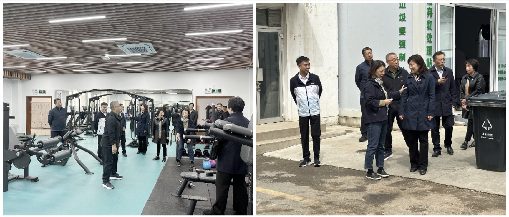 学校领导实地了解了学生健身中心和厨余废弃物处理站的运转情况。
