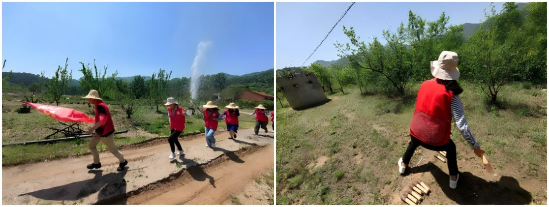 活动开始,两个支部联合设计了战争场景重现的互动游戏,通过组织全体党员演绎当年的战争场景这一环节,让参与者深刻体会到革命先辈在极端困难条件下展现出的智慧与勇气,生动再现了革命先辈们在非常艰苦的条件下敢于斗争、勇敢拼搏的革命底色。“这不是简单的模拟训练,”杨淑云老师擦拭着汗水感慨,“当亲自使用这些粗糙的武器工具,才真正明白什么叫‘一个手榴弹也要精打细算’的革命纪律。”