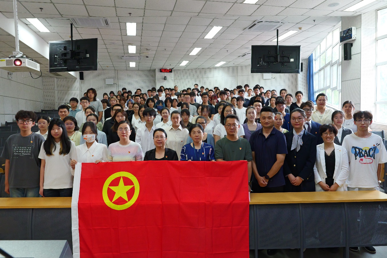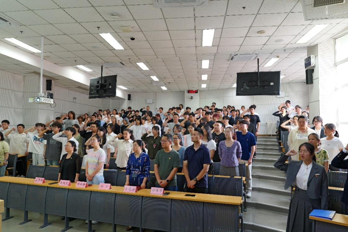 仪式在高亢的团歌声中落幕,新团员们胸前的团徽成为他们信仰的标识——他们将以誓言为起点,在医学实践中以青春的热情和实际行动,为实现中华民族伟大复兴贡献自己的力量!