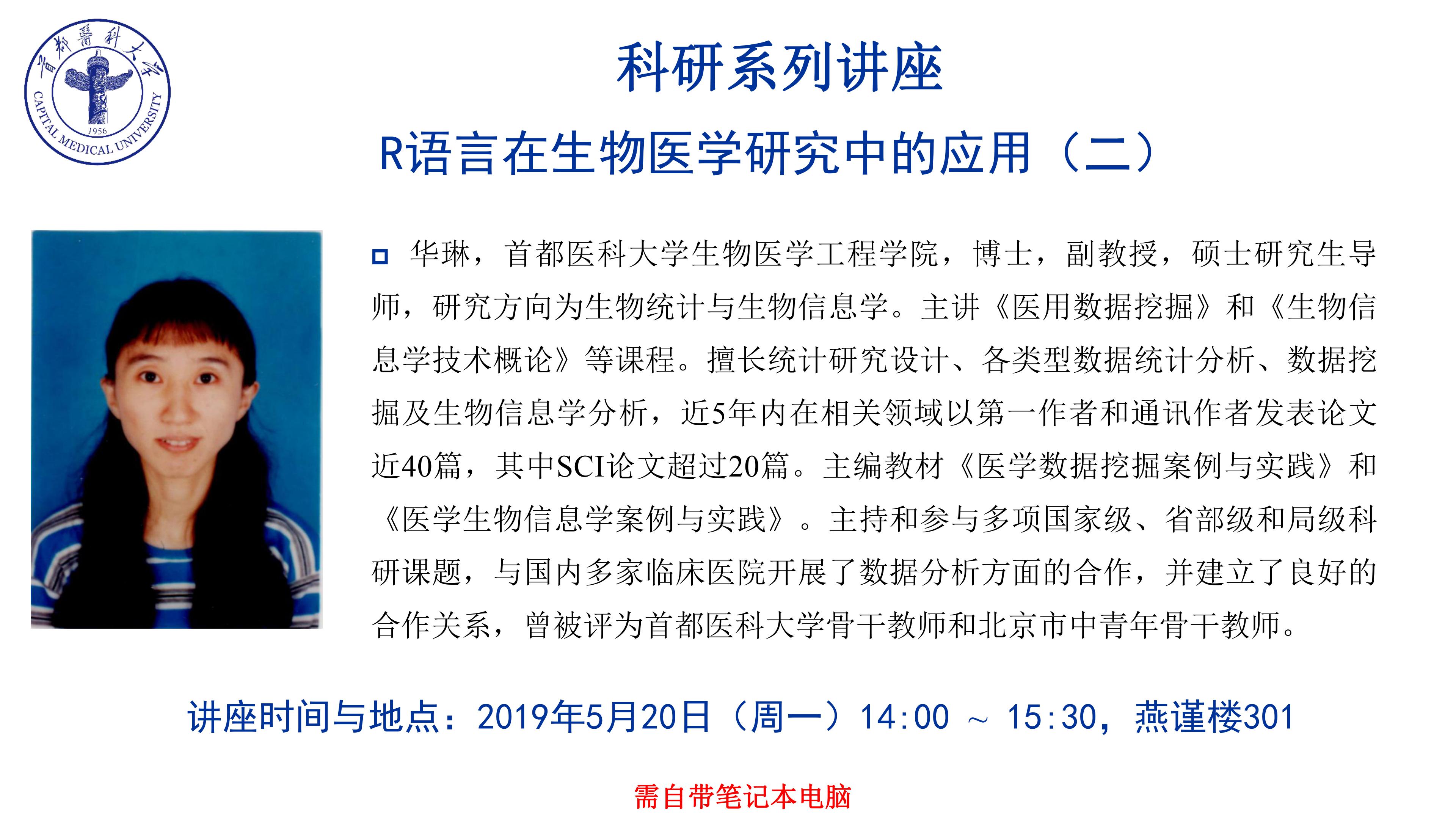 华琳副教授R语言在生物医学研究中的应用(二)讲座的通知